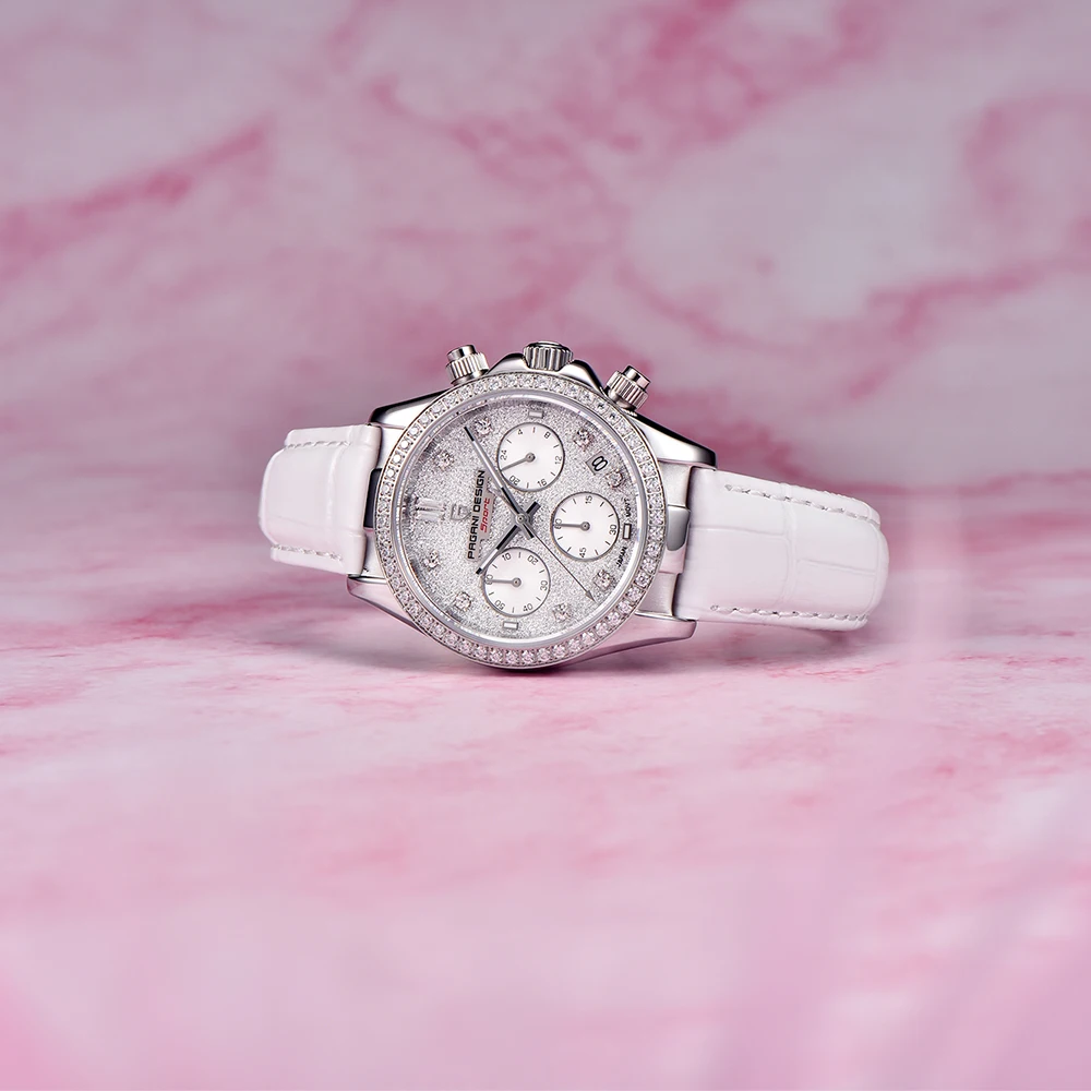 The watch comes with a luxurious leather band, providing comfort and a touch of elegance to your outfit.